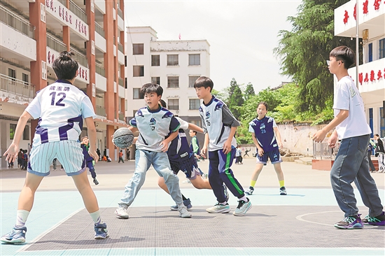 图为回龙小学的学生在打篮球。