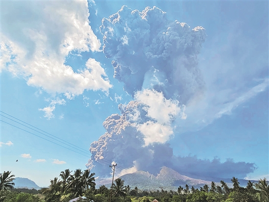印度尼西亚一火山喷发 火山灰柱高约18公里