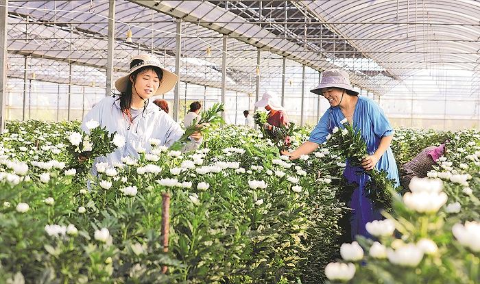 近年来,颍东区采取“企业+合作社+农户”的模式发展特色花卉苗木产业,形成集种植、加工、销售于一体的产业链,带动群众家门口就业。本报通讯员 宿飞 摄