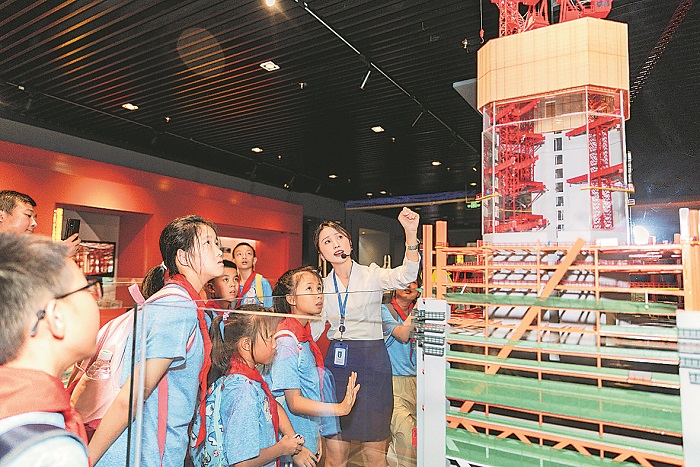 图为深圳市总工会组织孩子们参观中建科工大厦钢结构博物馆,学习钢结构相关知识。