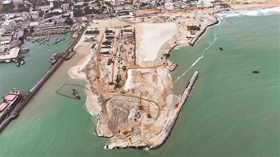 这是近日在贝宁科托努拍摄的科托努自治港5号码头施工现场(无人机照片)。新华社发(中国港湾工程有限责任公司供图)