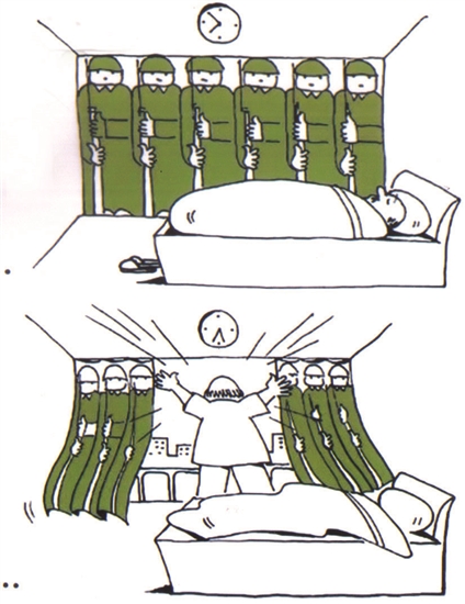 历代独裁者维护反动统治干尽不良勾当,他们害怕人民反抗,防止崩溃,处处设防,寝食难安……此等“危楼”只待坍塌!