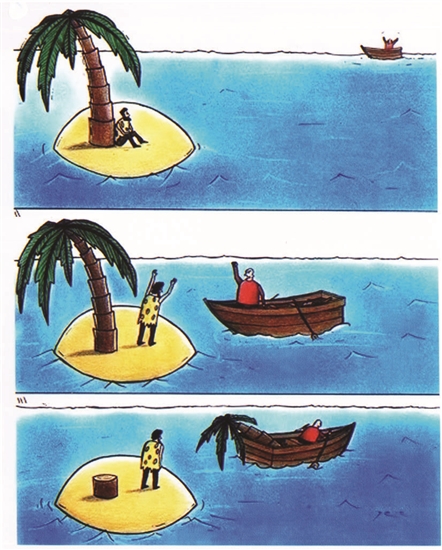 旅行者遇难漂浮到海上孤岛,千呼万唤终于等来了施救者,没想到竟是强盗,他们登岛后三下五除二将救命树伐走……