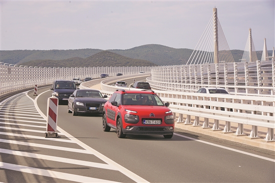 图为近日,车辆在克罗地亚佩列沙茨大桥上行驶。新华社记者 李学军 摄