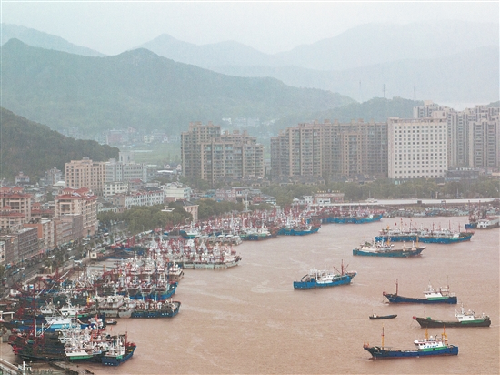 7月29日,受台风“竹节草”影响,船只驶入宁波市象山县石浦港避风。