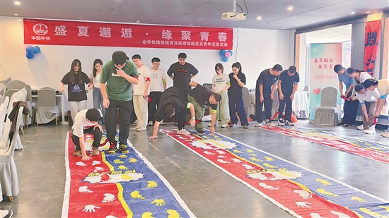 7月27日,中铁上海局一公司金华铁路枢纽扩容3标项目“盛夏邂逅·缘聚青春”青年交友活动在浙江金华千味谷营地举行。20余名青年职工在精心设计的团队协作游戏迅速拉近距离。现场欢声笑语不断。本报通讯员 张宁慧 张金浩 摄