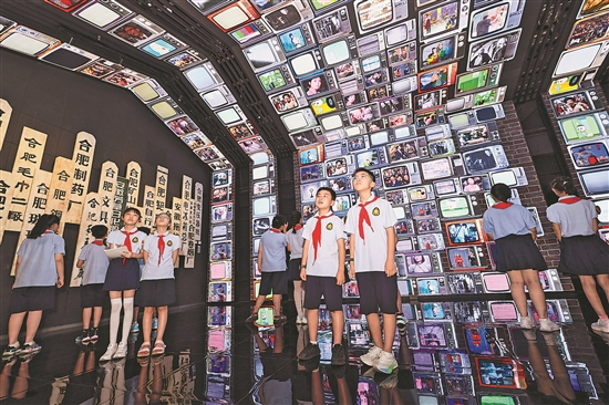 7月30日,在安徽省合肥市城市记忆馆,来自庐阳区双岗小学的小学生正在了解城市历史文化。