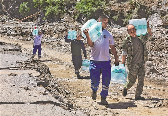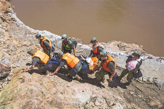 7月30日,北京卫戍区驻怀柔某部深入北京市怀柔区碾子湾村展开救援。这里地处山区,进村道路受洪水和泥石流影响损毁严重。当日,50名官兵安全转移20余名行动不便的群众。