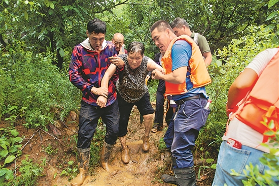 7月29日下午,受灾群众从北京市密云区北部山区紧急转移至密云城区。