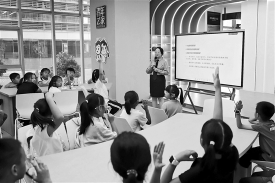 7月22日,在福建省厦门市滨海街道党群服务中心,思明区人民检察院工作人员为“暑期公益托管班”的孩子们宣讲法律知识。