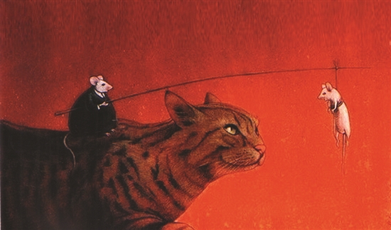这幅画主题凸显——批评受贿的执法者见利忘义,混淆是非、危害四邻,甚至成了犯罪嫌疑人的帮凶,真是可耻又可悲!