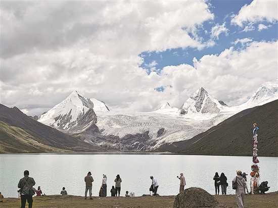 包括萨普旅游景区在内的西藏14个旅游景区,近期正式获批为国家4A级旅游景区。萨普雪山最高峰为6956米,是喜马拉雅山主峰北部的念青唐古拉山脉东段的最高峰。比如县文旅局副局长凌浩介绍,每逢盛夏,由于冰雪融化,山脚形成了如镜的湖面,“冰川+圣湖”的景致吸引大量游客前来探访。本报记者 曹玥 摄