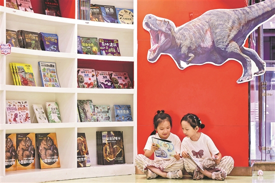 暑假期间,许多学生在浓浓书香中度过休闲时光。7月29日,两名小朋友在山东省枣庄市鲁南书城阅读图书。本报通讯员 孙中喆 摄