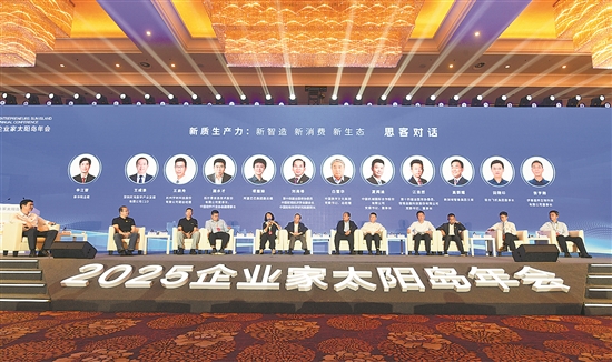 8月3日上午,以“新质生产力:新智造 新消费 新生态”为主题的2025企业家太阳岛年会主论坛在哈尔滨举行,来自政商学研企等领域的嘉宾共赴“冰城”,为经济社会高质量发展注入新动能。图为年会主论坛现场。