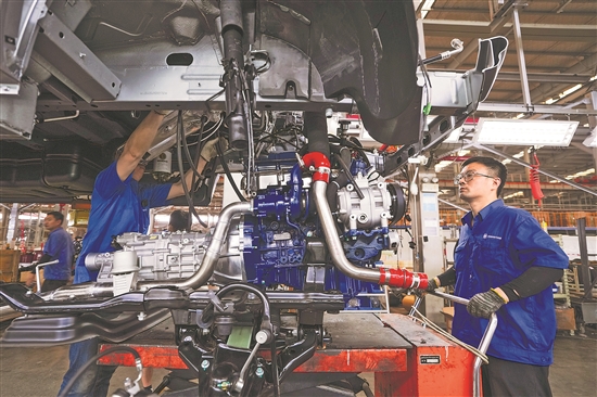 图为工人在江苏扬州亚星客车生产车间内作业。新华社记者 李博 摄