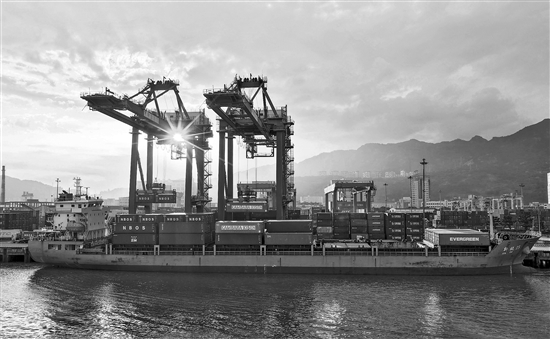 7月29日,在福建省福州青洲集装箱码头,大型货轮往来穿梭,码头作业有条不紊,开足马力生产,一派忙碌景象。