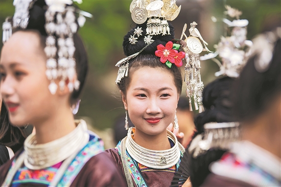 日前,在贵州省从江县西山镇顶洞村,侗族少男少女赶赴参加成人礼。这天也是贵州省黔东南苗族侗族自治州从江县西山镇顶洞村一年一度新米节,全村即将迈入成人行列的少男少女,身着节日盛装,欢聚于鼓楼与风雨桥之间,踏着轻快的步伐,吟唱着悠扬的侗歌,向先祖虔诚地宣告自己的成年,期盼着在爱情的田野上自由驰骋,在事业的征途上勇敢前行。