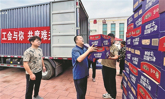 榆中县山洪灾害发生后,兰州市总工会迅速采购生活用品和食品。当日,10辆车共计30万元的物资送达灾区。目前,榆中县各级工会组织共有110名工会干部参与抢险救灾和群众安置工作。本报记者 康劲 摄