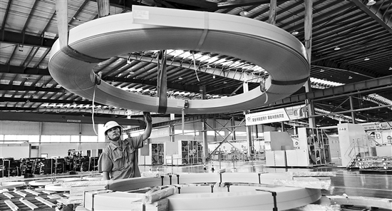 8月13日,江苏连云港经济技术开发区,产业工人在中复碳芯电缆科技有限公司生产车间忙碌着。