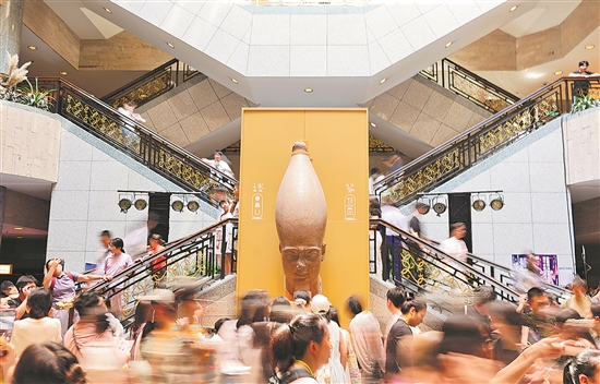 8月17日,观众走在上海博物馆人民广场馆中央大厅内。