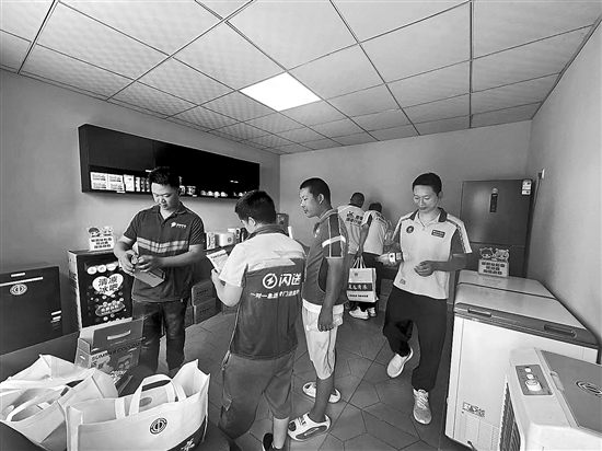 图③成都高新区新业态劳动者在“中和·蜂巢”职工服务驿站领取清凉礼包。受访者供图