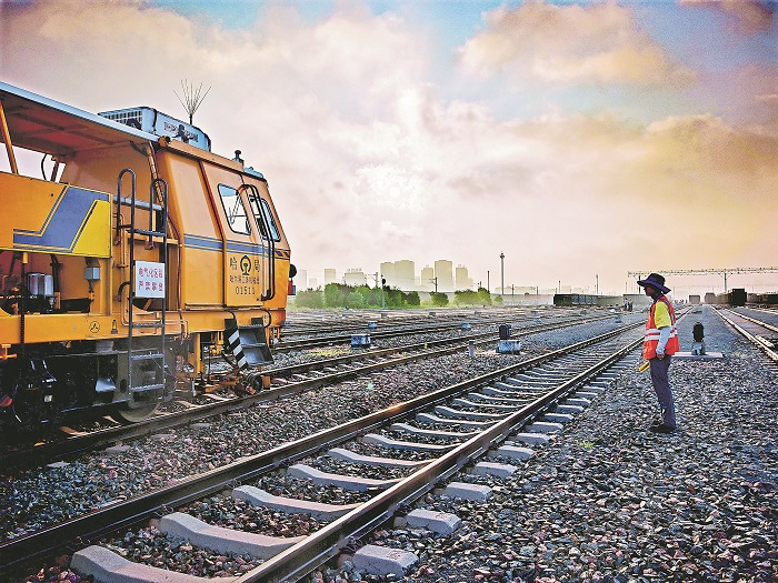 中国铁路哈尔滨局集团有限公司哈尔滨工务段积极应对高温天气,尽最大可能安排户外工作避开正午高温时段。为作业人员配备清凉饮品、防晒装备和防暑急救药品,确保高温下安全生产。图为近日,该段派驻式大机机组清晨时段在哈南编组场进行线路捣固施工作业。孟庆庆 摄