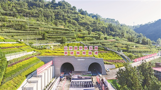 空中俯瞰渝昆高铁炳辉隧道(8月19日摄,无人机照片)。