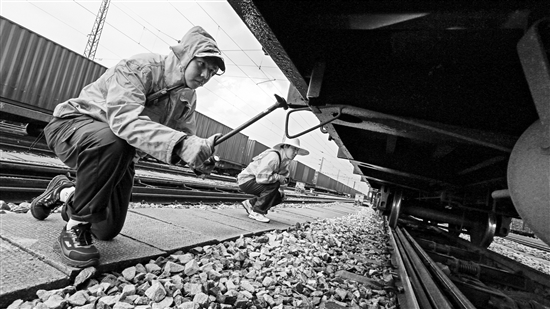 8月11日午后两点,杭州气温高达38摄氏度。在浙江铁路货运枢纽——中国铁路上海局集团有限公司乔司编组站站区内,货检员们正在仔细检查货物的装载情况,不放过任何一个细节;检车员们穿梭在列车之间,认真检查车辆走行、制动装置等关键部位。本报通讯员 何俊烨 汪晟 摄