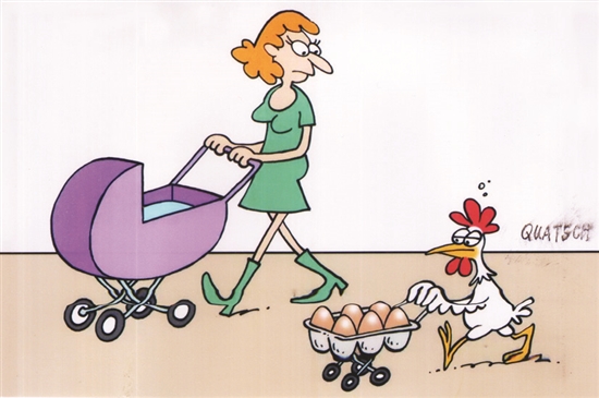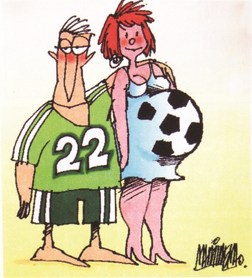 足球健将的妻子怀孕了,隆起的肚子与皮球惟妙惟肖,夫妇俩多么期待新生儿能成为童星,长大接替爸爸拼搏在绿茵场上。
