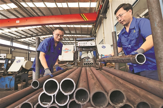 8月20日,安徽省淮北市总工会机关干部在杜集开发区一工矿制造企业当工人。