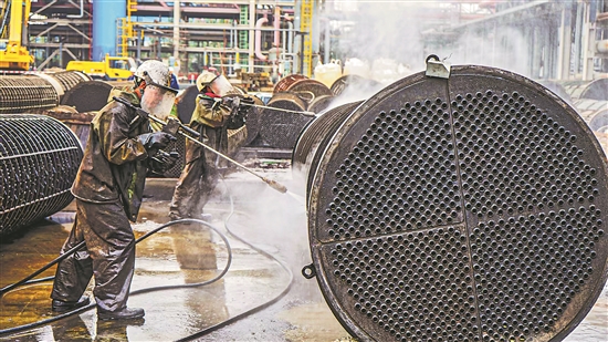 8月15日,辽宁抚顺石化工建公司承担的抚顺石化89套装置检修正式展开。涵盖静设备、动设备、电气、仪表等4个专业,5682分项检修任务,工期65天。图为一线班组人员正在检修现场消除装置隐患,为设备安稳运行筑牢基础。赵钰 摄