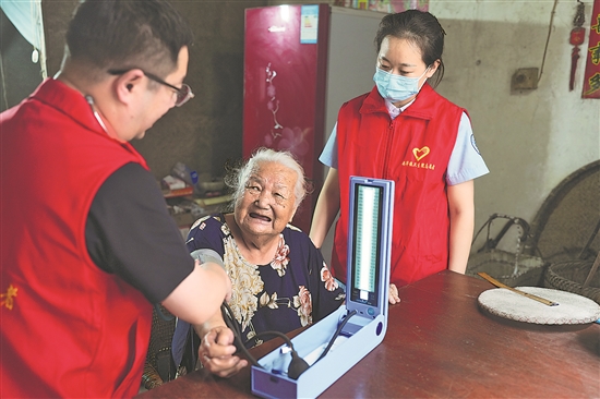 8月26日,在安华镇河杨社区,医疗服务志愿队在村民家中提供家庭医生签约服务。