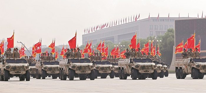 海上无人作战方队通过北京天安门广场接受检阅。受阅的新型无人潜航器、无人艇、无人布雷系统,具备隐蔽布放封锁、自主探测识别、集群组网攻击等作战能力,是海上作战的奇兵利器。本报记者 王伟伟 摄