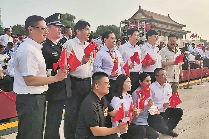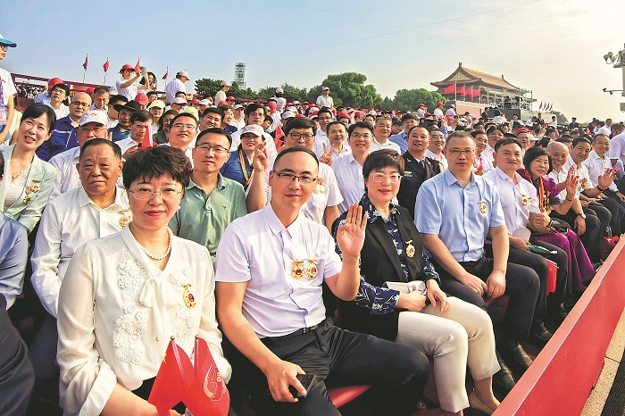 张来清和上百位来自各行各业的先进模范人物代表,落座位于天安门西华表旁的观礼台,共同见证这场盛大的阅兵仪式。