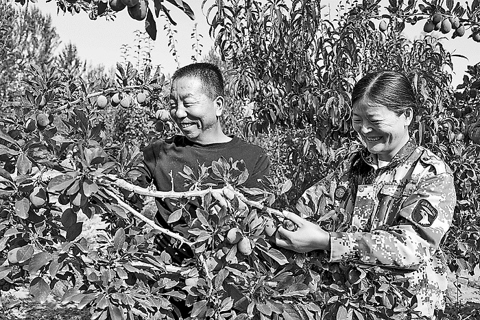 9月1日,甘肃省酒泉市金塔县金塔镇红光村西梅种植园里,果农正忙着采摘、分拣、包装、装箱。