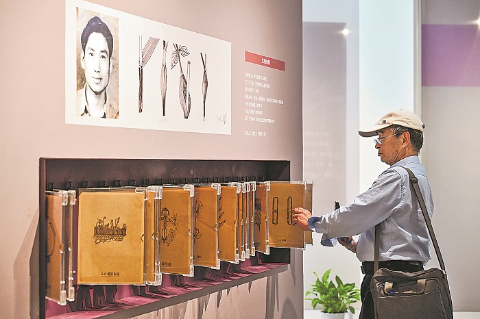 9月3日,“西南联大与抗日战争”专题展在位于昆明的云南师范大学一二·一西南联大校区开展。图为观众翻看西南联大生物学系练习生唐英绘制的生物图谱。