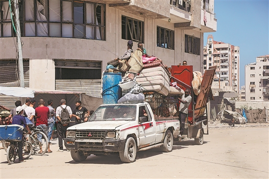 以色列国防军近日发表声明说,鉴于加沙城地面行动的扩大及在“基甸战车2”行动中对巴勒斯坦伊斯兰抵抗运动(哈马斯)据点的占领,以军在加沙南部汗尤尼斯地区设立人道主义援助区。图为近日,巴勒斯坦人携带家当逃离加沙城。新华社发 (里泽克·阿卜杜勒贾瓦德 摄)
