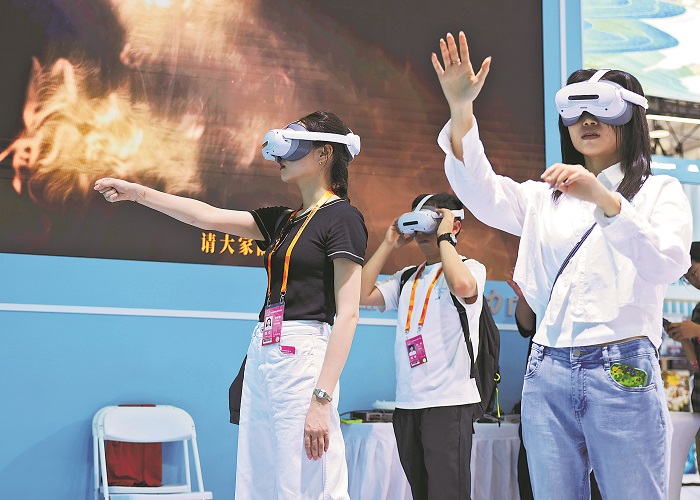 9月11日,观众正戴着头显,感受XR沉浸技术。