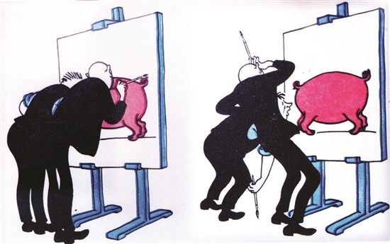 合作的目的在于取长补短,互相谦让。如果相反,则会出现漫画中令人啼笑皆非的情形。