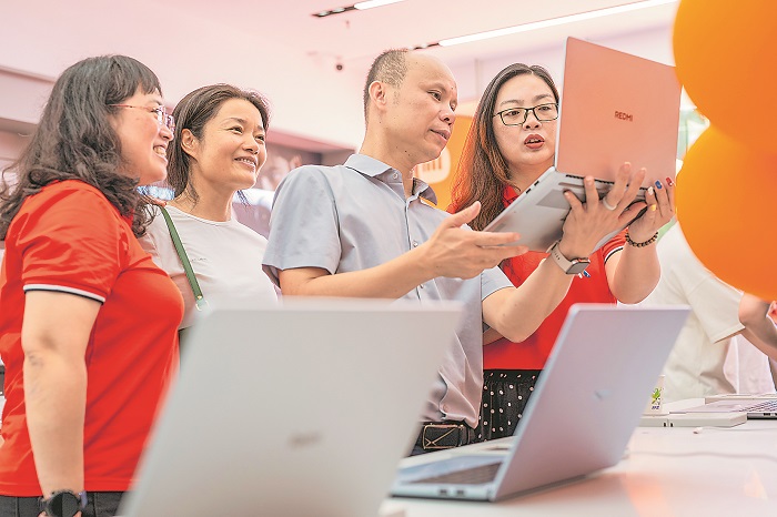 今年以来,梧州市积极贯彻落实消费品购新补贴政策,有力推动消费增长。尤其是数码电子产品可享受“国补”“省补”“厂家补”等优惠补贴政策,使购买优惠力度进一步加大,吸引众多消费者进店咨询体验选购,有效激发消费市场活力。本报通讯员 何华文 摄
