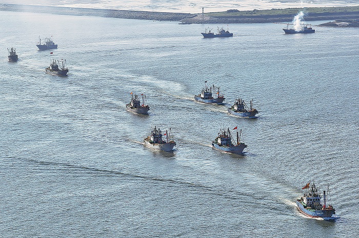 9月16日,在江苏启东吕四渔港,600余艘渔船相继出海,开启“寻鲜之旅”。