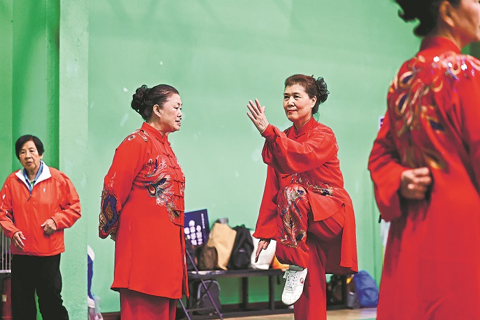 来自北京市丰台区律师协会的太极拳代表队在赛前热身。本报记者 王羡茹 摄