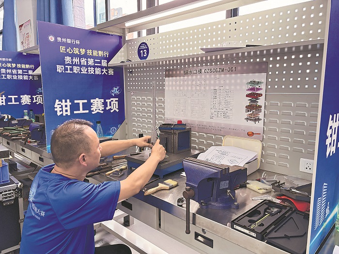 本届大赛共设置16个赛项,包括6个全国选拔项目和10个省特色产业项目,涵盖焊工、大数据、白酒品评、手工刺绣等多个行业领域。赛事在遵义主赛区及贵阳、仁怀、湄潭三个分赛区同步进行,吸引来自全省各地的960余名选手同台竞技。本报记者 李丰 摄