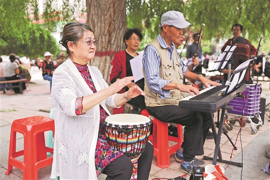 市民在兰州市城关区和政路口一处公园内休闲(9月16日摄)。