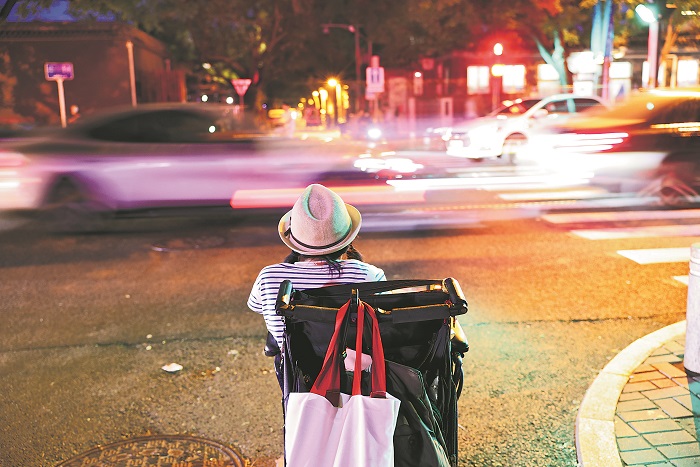 9月14日晚,在北京地坛书市摆摊结束后,洛洛独自一人赶往位于南锣鼓巷的家。