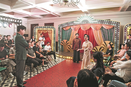 近日,上海奉贤,南塘戏剧社文艺爱好者在沈家花园沉浸式舞台表演原创红色公益戏剧《子夜》。据悉,奉贤南塘戏剧社自2016年成立至今,累计策划、执行文化活动近300场,创排原创文化作品百余个。视觉中国 供图