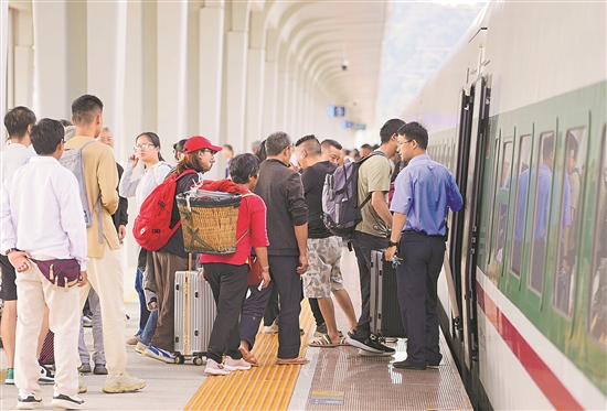 9月20日,旅客在中老铁路普洱站乘车。
