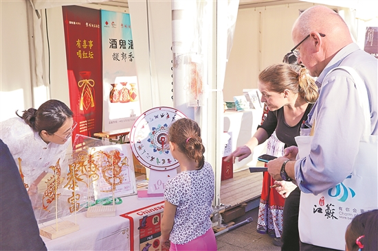 本次中国节为期3天,面向当地民众展示多种中国文化形态与中德交流元素,包括由中国演出团体带来的大型文艺表演、中国电影展播以及民乐、流行电音、太极拳等文化活动展示。此外,纪念中国人民抗日战争暨世界反法西斯战争胜利80周年图片展也将在其间举办。图为近日,在杜伊斯堡市中国节露天展台前,一名小朋友正在参与中国糖画转盘游戏。新华社记者 刘向 摄