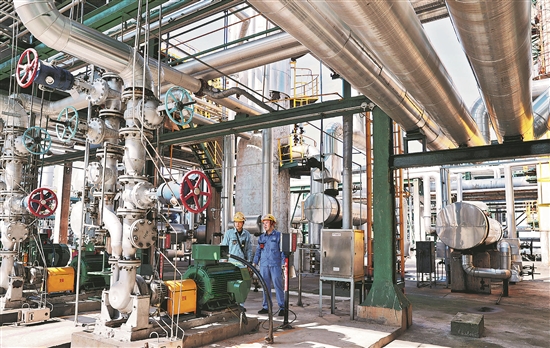 近日,湖南石化深入开展安全隐患排查整治“雷霆行动”,优化炼油及部分化工装置检修运行。图为炼油部(二区)炼油装置生产现场,当班员工顶着高温进行巡检操作。彭展 摄