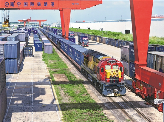 记者从中国铁路南宁局集团有限公司获悉,截至9月22日,2025年广西始发中越班列已累计发运出口货物2.6万标箱,同比增长173%,为区域产业链、供应链稳定和经贸往来注入强劲动能。新华社记者 邢广利 摄